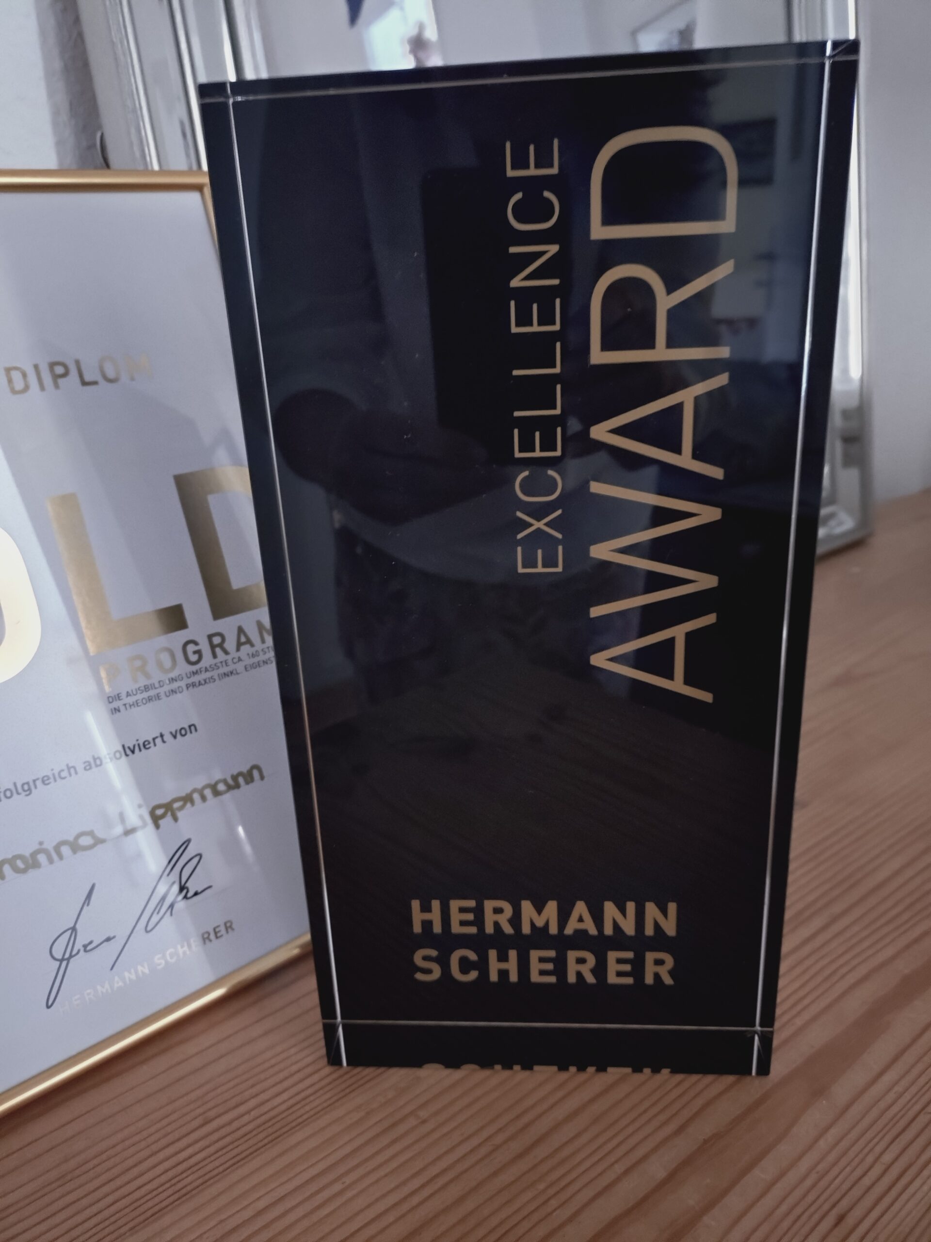 Hier steht er nun im Büro. Mein Speaker Excellence Award, überreicht von Hermann Scherer.